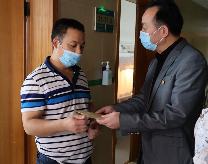 5月26號(hào),市城建投公司黨委委員、監(jiān)事會(huì)主席劉運(yùn)祥帶領(lǐng)部分黨員代表到懷化市第一人民醫(yī)院看望溆浦縣龍?zhí)舵?zhèn)諶孫華一家并送去了善款一萬余元,盡綿薄的力量緩解諶孫華一家燃眉之急。