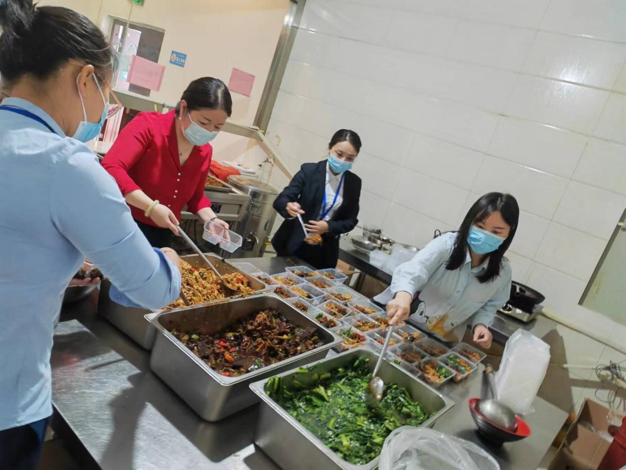 面對(duì)疫情變化,公司食堂工作人員出行受限,眼看國(guó)資系統(tǒng)抗疫人員,市城建投公司、市交建投公司包保社區(qū)志愿者、醫(yī)務(wù)人員和駐守大本營(yíng)的守護(hù)者用餐無(wú)法保證時(shí),市城建投公司領(lǐng)導(dǎo)率先垂范,帶領(lǐng)“大本營(yíng)”守護(hù)者們走進(jìn)食堂,紛紛化身洗菜工、切菜員、廚師、打菜員……自己動(dòng)手,煮飯炒菜,打包送餐?!皠傞_(kāi)始挺怕,壓力也大,頭一回用大型的廚房設(shè)備,挑戰(zhàn)兩三百人的用餐,心里在打鼓,怕操作不當(dāng),耽誤大家就餐,怕味道不好等,還是大家的鼓勵(lì)和齊心協(xié)力,讓我們圓滿完成任務(wù)?!焙笄诒U辖M工作人員笑道,“掌勺不易,還好最后大家都挺滿意”。