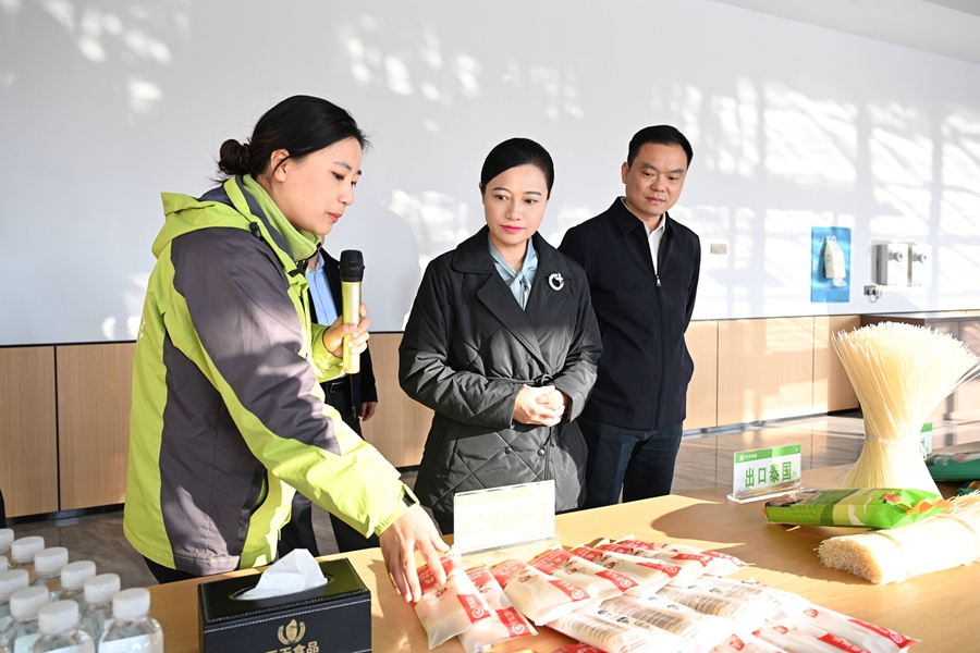 (12月5日下午,市委副書記、代市長(zhǎng)韋朝暉在中方縣調(diào)研。圖為韋朝暉在懷化天天食品科技有限公司詳細(xì)了解農(nóng)副產(chǎn)品精深加工與東盟市場(chǎng)拓展等情況。懷化日?qǐng)?bào)全媒體記者 吳濤 攝)