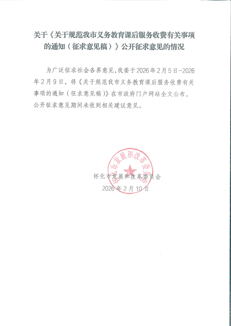 關(guān)于《關(guān)于規(guī)范我市義務(wù)教育課后服務(wù)收費(fèi)有關(guān)事項(xiàng)的通知(征求意見(jiàn)稿)》公開(kāi)征求意見(jiàn)的情況