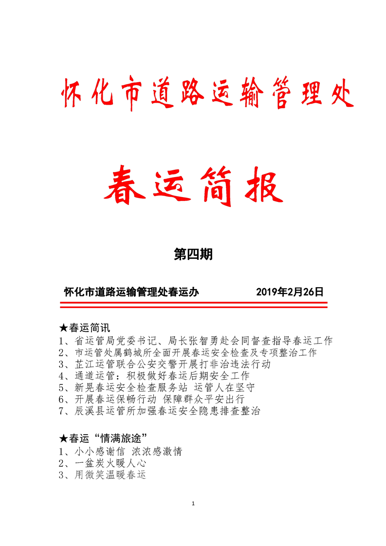 懷化市道路運(yùn)輸管理處2019年春運(yùn)簡(jiǎn)報(bào)(第四期)