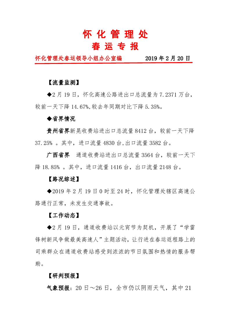 2019年懷化市高速公路春運專報(第29期)