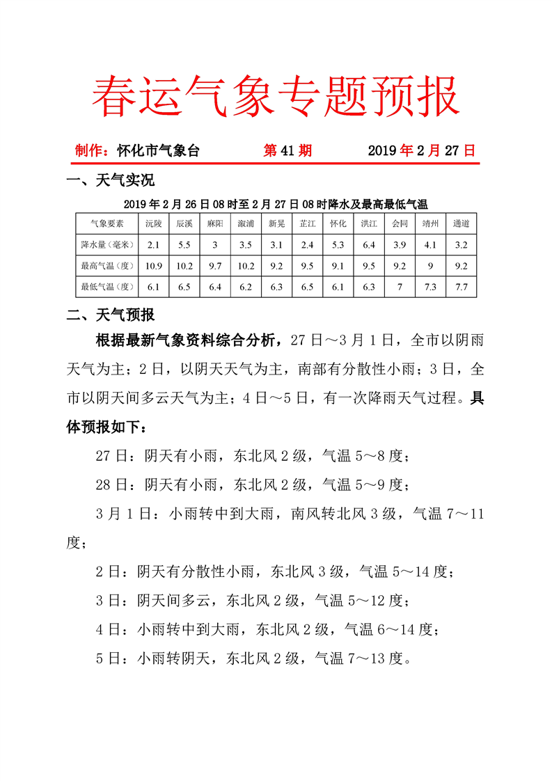 春運(yùn)氣象專(zhuān)題預(yù)報(bào)(第41期)