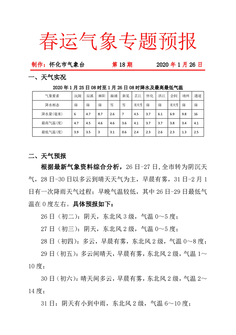春運(yùn)氣象專題預(yù)報(bào) 第18期