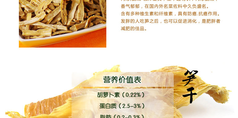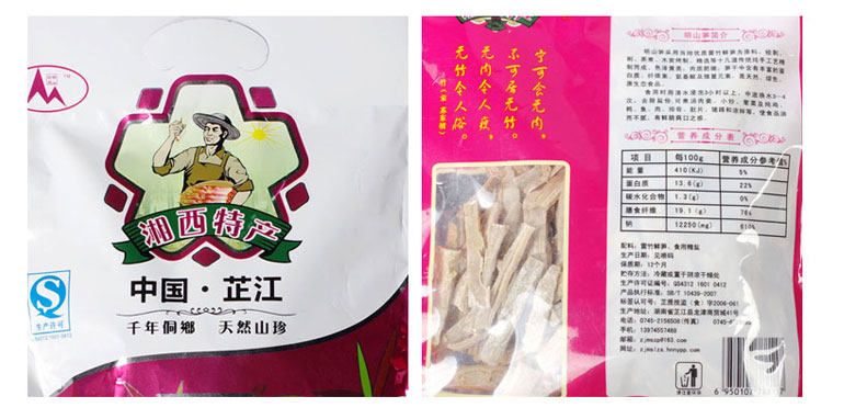 品牌: 明山筍 包裝方式: 袋裝 保質(zhì)期: 一年 凈重: 238g 生產(chǎn)許可證: QS4312 1601 0412,QS4312 1601 0412 產(chǎn)品標(biāo)準(zhǔn)號(hào): SB/T 10439-2007,SB/T 10439-2007 配料表: 雷竹鮮筍、食用精鹽,雷竹鮮筍、食用精鹽 儲(chǔ)藏方法: 冷藏或置于陰涼干燥處,冷藏或置于陰涼干燥處 食品添加劑: 無 產(chǎn)地: 湖南省 懷化市 芷江侗族自治縣 |