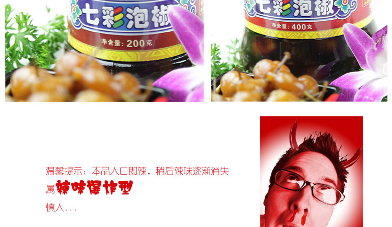 播陽 老壇泡菜 腌菜 下飯菜 超辣七彩泡椒 瓶200/400g
