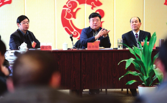 1月9日上午,市委書(shū)記張自銀與鶴城代表團(tuán)一起審議。 (陸曉鵬 攝)