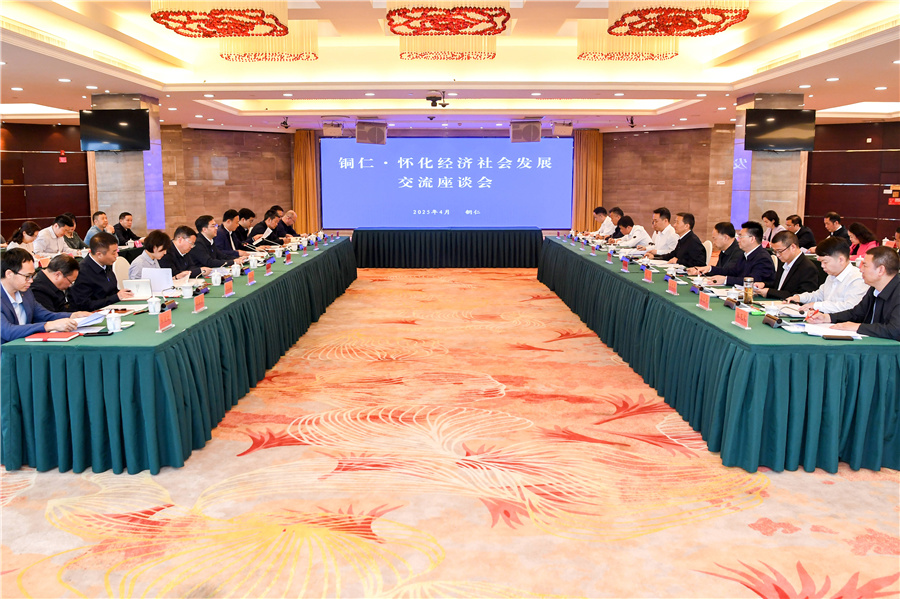 (4月22日,懷化市黨政代表團赴銅仁市學(xué)習(xí)考察。圖為銅仁·懷化經(jīng)濟社會發(fā)展交流座談會現(xiàn)場。)