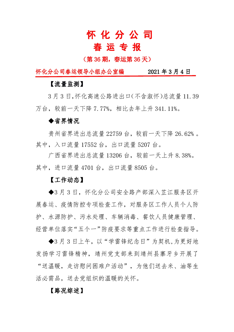 省高速集團懷化分公司第36期春運專報