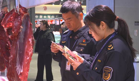 在主城區(qū)大型超市,執(zhí)法人員聚焦春節(jié)消費(fèi)熱門品類,選取不同品牌預(yù)包裝食品,仔細(xì)查看生產(chǎn)日期、有效期、執(zhí)行標(biāo)準(zhǔn)、配料表等信息,嚴(yán)防“三無(wú)”食品、過(guò)期食品流入市場(chǎng);同時(shí),依托農(nóng)產(chǎn)品質(zhì)量安全可追溯系統(tǒng),掃碼查驗(yàn)牛肉、豬肉等畜禽肉承諾達(dá)標(biāo)合格證、檢疫檢驗(yàn)證等情況。檢查過(guò)程中,執(zhí)法人員現(xiàn)場(chǎng)督促超市經(jīng)營(yíng)者嚴(yán)格落實(shí)食品安全主體責(zé)任,嚴(yán)把進(jìn)貨查驗(yàn)關(guān),定期自查并及時(shí)清理臨期、不合格食品,切實(shí)從源頭防范食品安全風(fēng)險(xiǎn)。
