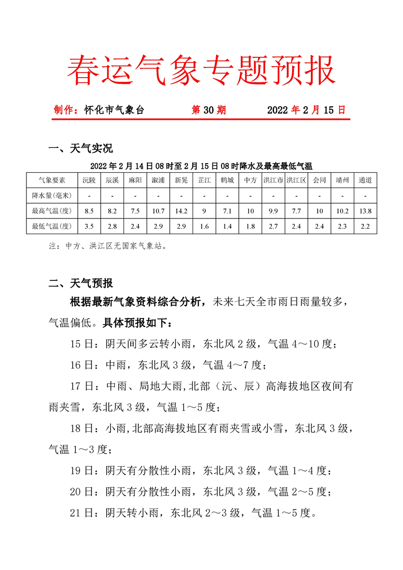 春運(yùn)氣象專題預(yù)報(bào) 第30期