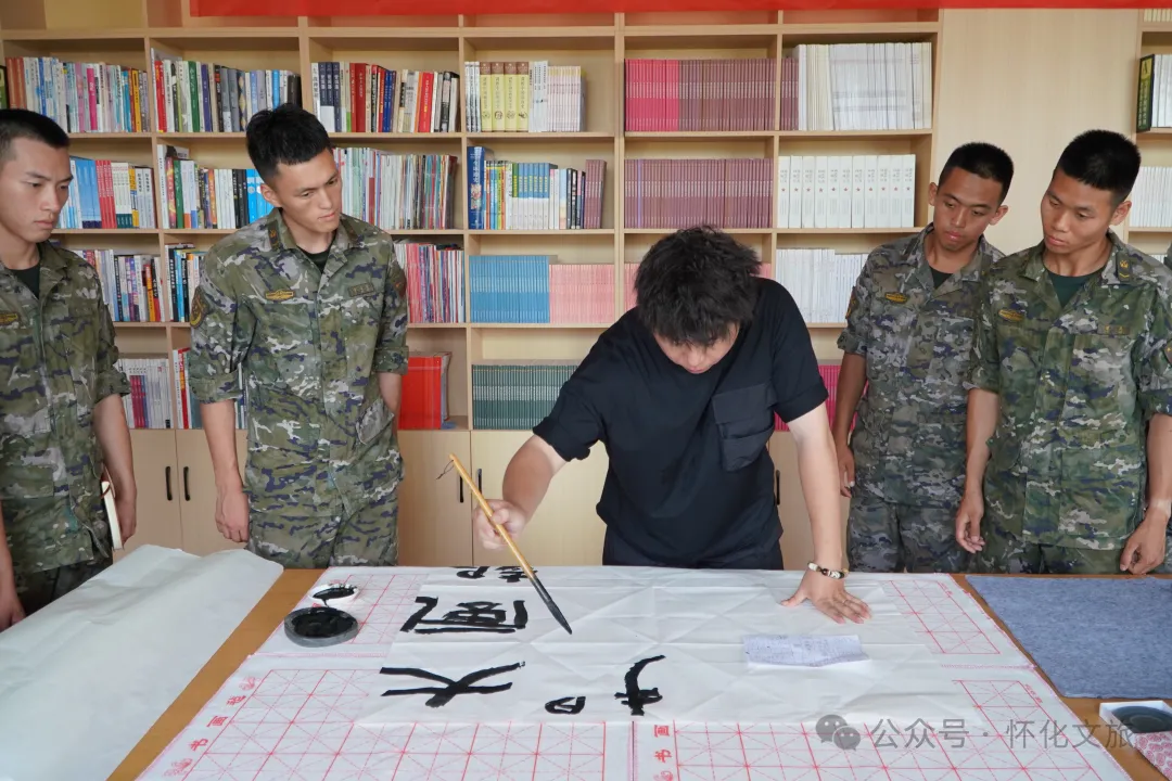 活動(dòng)現(xiàn)場(chǎng),懷化市圖書館邀請(qǐng)湖南省青年書法家協(xié)會(huì)理事、懷化市書法家協(xié)會(huì)副秘書長張鵬進(jìn)行授課和交流,在介紹書法的基本知識(shí)后,張鵬帶領(lǐng)現(xiàn)場(chǎng)官兵們鑒賞書法作品,并與大家一起進(jìn)行書法創(chuàng)作,提升大家的文藝創(chuàng)作能力。