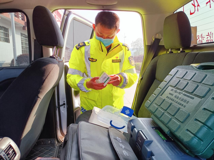 (檢查巡邏車(chē)上藥品、工具。)