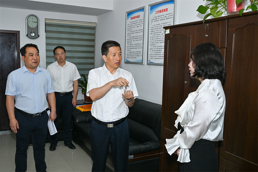 圖為許忠建在市科技局調(diào)研。(以上照片均由懷化日報(bào)全媒體記者 潘雨 攝)