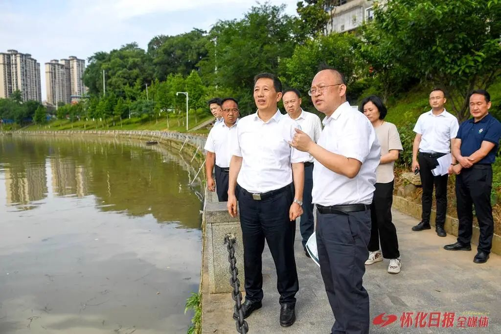 5月27日下午,市委書記許忠建督導(dǎo)檢查中央生態(tài)環(huán)境保護(hù)督察典型案例整改工作。圖為許忠建在太平溪84號(hào)排污口實(shí)地查看管網(wǎng)改造、污水收集處理和排放情況。(懷化日?qǐng)?bào)全媒體記者 楊智偉 攝)