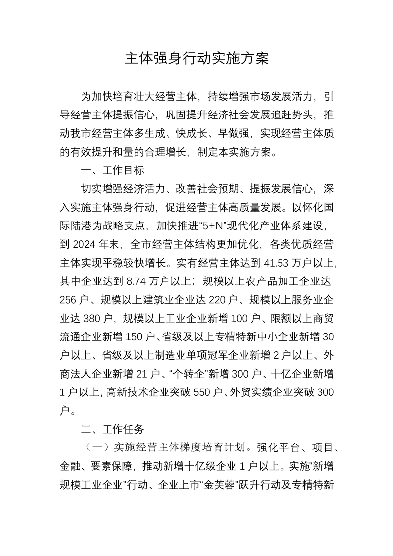 [政策]主體強身行動實施方案