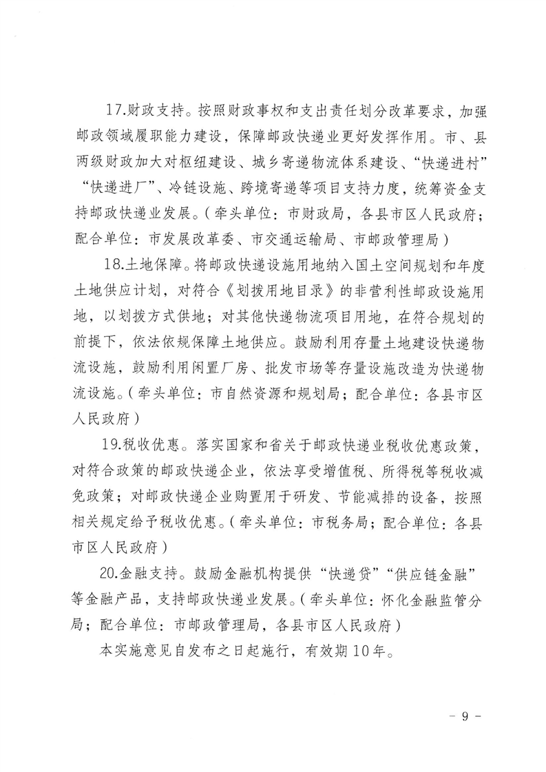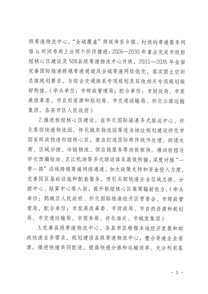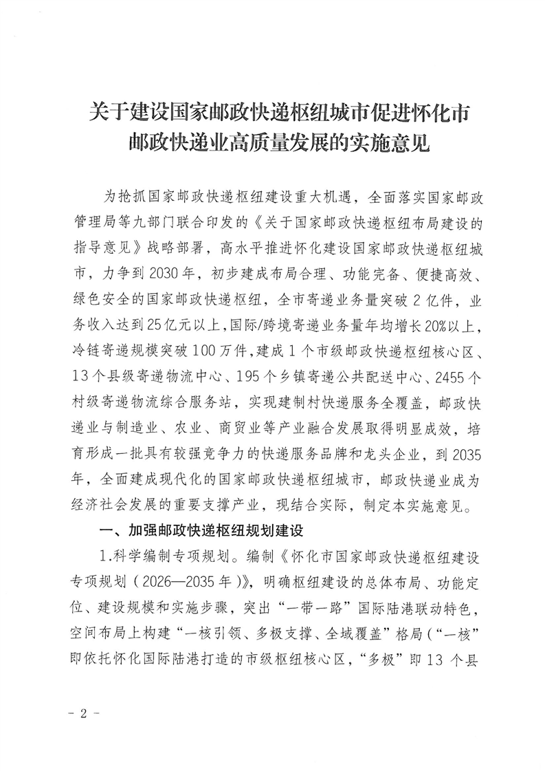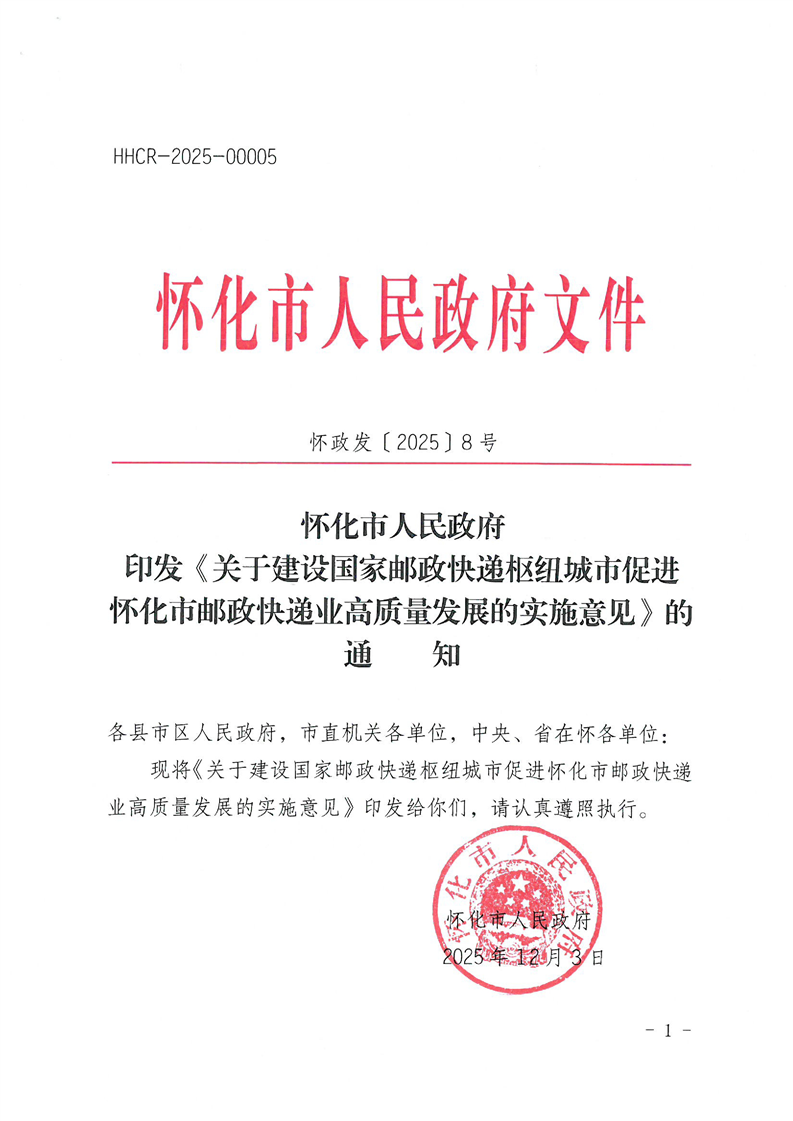 懷化市人民政府印發(fā)《關(guān)于建設國家郵政快遞樞紐城市促進懷化市郵政快遞業(yè)高質(zhì)量發(fā)展的實施意見》的通知