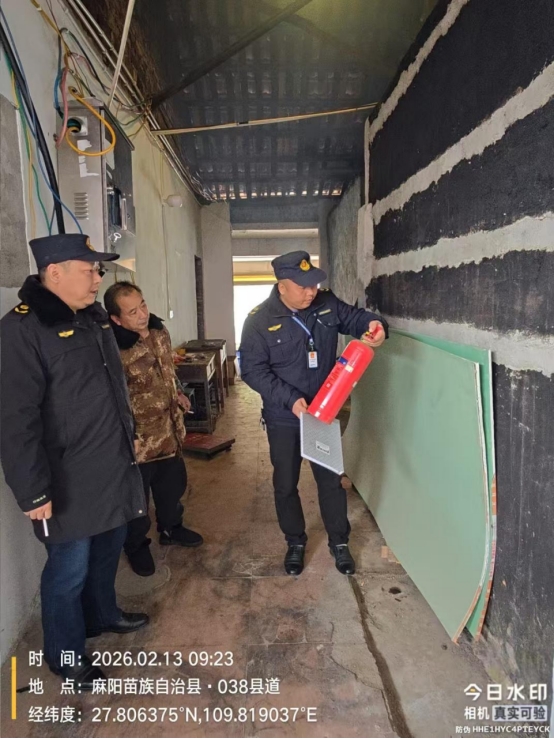 2月13日,麻陽蘭村鄉(xiāng)應(yīng)急人員開展節(jié)前安全隱患排查。